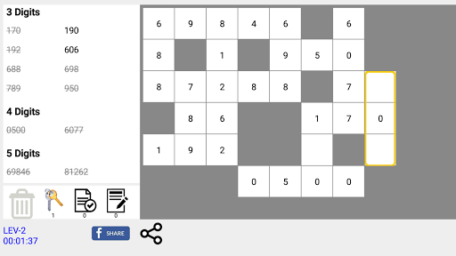 The main task on this game is fill all blank boxes with provided string of numbers.