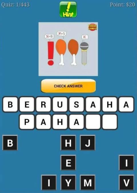 Permainan ini mengajak kita untuk menebak makna dari sebuah gambar. Terdapat 443 gambar yang siap kamu tebak. Permainan ini menguji kreatifitas dan mengasah otak kita.