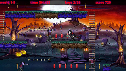 In the shoes of Gaspare, the grave digger, you'll have to escape from hell, exploring dangerous places populated by evil monsters while collecting keys and items to find your way out.
