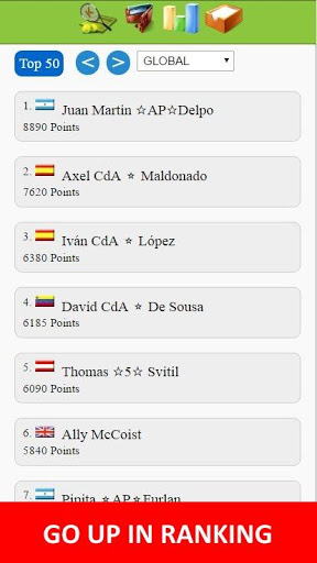 Fight your way through small tournaments on the ATP level, and measure yourself with real human opponents from around the world. All players have the same goal, number 1 in the tennis world to be. Collect as much ranking points as you can during the season.