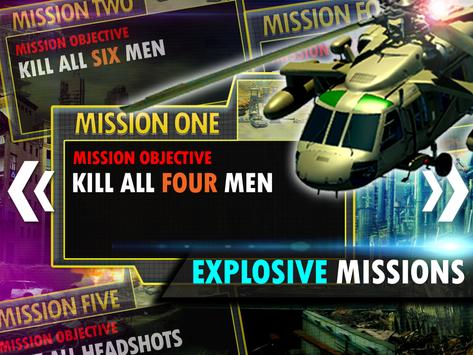 This is the first commando mission of Terrorist Sniper Shooter. We have to destroy the swamp basecamp of Terrorists group having guns and ammunition storage at the base. Be prepared for the blend of battle terrain, dust storm and nearby frontier Wildfire Mountain. Our Agencies, usmc forces and Undercover Agents have found out that this base is the heart of terrorists, so we need to cut them off from their base camp that lies near a mountain. Make sure the marine shooters target for headshots. Pull the trigger; widen the scope of your hunt, aiming for the headshot to kill them without any firing squad. Collect as many clues as you can so that you can attack the next base. Cross firing may hurt your sniper shooter, so stay focused. Reload your rifle every now and then since the gunshots are limited. Battle is between the good n bad / evil forces. In Terrorist Sniper Shooter, you have got the best commando anti-terrorist war guns, latest helicopters and trained troops with unmatchable skills to destroy the terrorist and their camps. Enjoy attractive UI and amazing sniper simulator animations in Terrorist Sniper Shooter. Once all the enemies are dead in this battlefield, the military assault is over.
