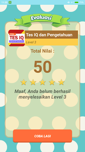 Didalam permainan tes IQ dan pengetahuan ini, untuk membuka level selanjutnya, pemain harus menjawab soal-soal dilevel sebelumnya tanpa ada kesalahan sedikitpun.