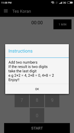 Sepeti pada tes kraepelin, tes pauli atau tes koran anda disuruh menambahkan 2 angka secepat munkin dan melihat kinerja daya ingat anda dalam waktu yang lama. Bandingkan kemampuan anda dengan teman-teman lainnya setelah anda mengirimkan skor anda ke google play games.