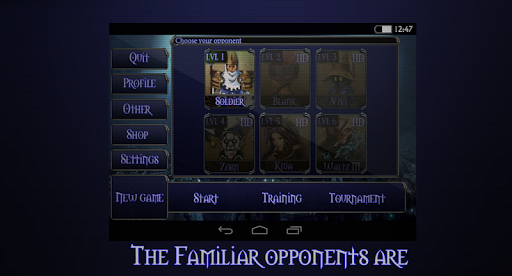 Each card has attributes of attack, defence, attack method (physical of magical) and direction of the move.