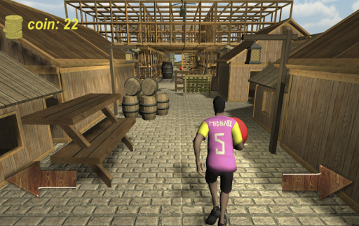 endless runner game with lot of obstacles like goal bag and ancient things on road and different scene like fish market road,forest,ancient kiva,building construction wood houses, bridges and challenging road andevery 10 to 20 second helicopter near by and throw bomb you near to escape from that , hitting on obstacle or helicopter bomb could kill you and points you earn is based on the coins collected(kicking ball in goal bag) and let's fight and survive your way through the ancient road