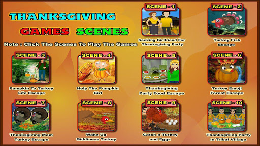 In this escape game app, you can play 10 different Thanksgiving concept games. You can choose any of the Thanksgiving games which you like to play first. And you can also quit at any time before the game ends. No worries, the game will be auto-saved and you can continue that game from where you left. 10 Different concept more than 200 of Challenging puzzles, Beautiful graphics. All are free, full pack entertainment is waiting for you just download and play the game. Also, share your valuable feedback to us.