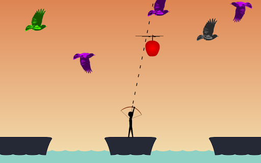 --> Drag and drop your finger for targeting and firing arrows in the birds that flies across the screen.