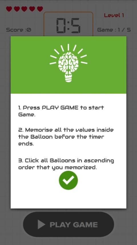 Exercise Your Brain! Memory Game is intended to be brain challenging entertainment. This is a game for both children and adults of all ages.The game challenges to memorize a series of numbers and later recognize them in ascending order.