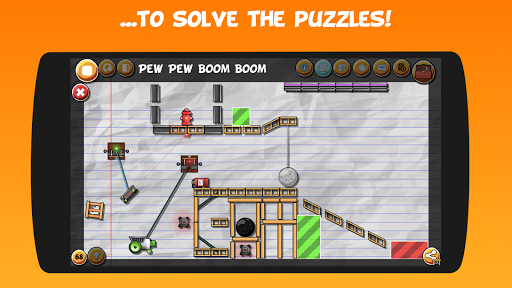 Ever wanted to know what would happen if you hooked up a Fire Extinguisher to a wooden crate inside a room full of pinball bouncers. Well now you can. With those possible 100 items, your own creativity is the only limit in the Sandbox. Play the puzzles to unlock even more Items to add to your own personal contraptions and share them with your friends!