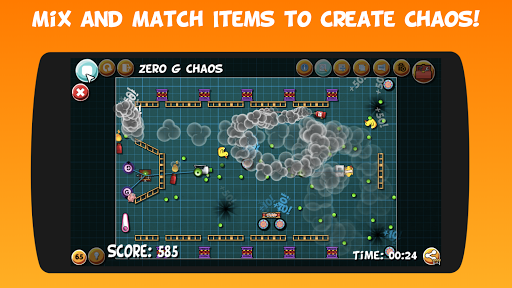 Welcome to The Chaotic Workshop, a cartoon puzzle sandbox game which challenges you to solve its puzzles by any means necessary. From rockets to pinball bouncers, tennis ball cannons to proximity mines, it is up to you of how to get the job done. With over 100 items, 80 levels and a full-fledged sandbox level editor, the game becomes whatever you’re imagination can make it.