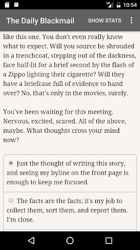 "The Daily Blackmail" is a 33,000 word interactive fantasy novella by Mary Duffy, where your choices control the story. It's entirely text-based—without graphics or sound effects—and fueled by the vast, unstoppable power of your imagination.