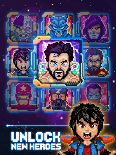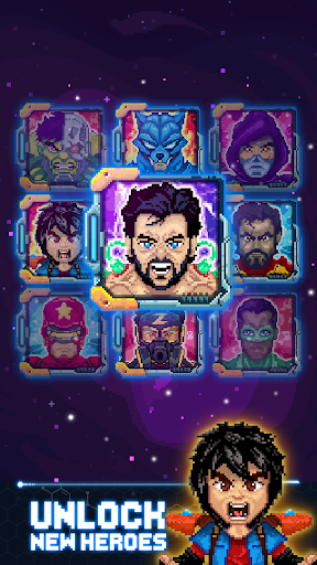 The earth has fallen… assemble your own pixel superhero army and go to war! Avenge the world and fight against the cosmic enemies in this original action game with a great pixel art style design and easy to play one touch controls.