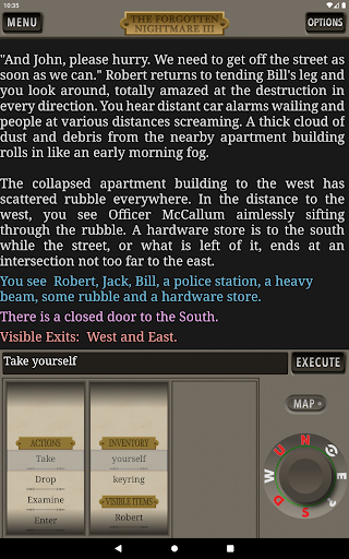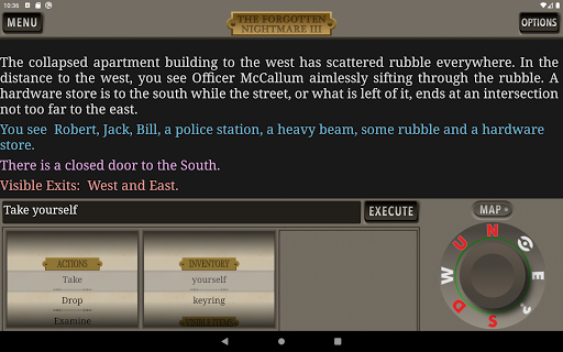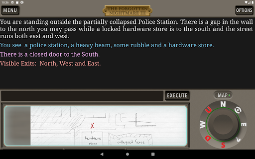 The Forgotten Nightmare 3 is the third chapter in The Forgotten Nightmare text adventure game series. In Chapter 1, you awaken after an accident with amnesia, hanging upside-down by your seatbelt. After escaping the destroyed van you explore a desolate small town that has experienced a series of strange disappearances. Encountering two inhabitants, the three of you flee to a nearby town. In Chapter two, your two new friends are arrested for unknown reasons and you focus on exploring this new town and free your companions. After a massive earthquake strikes, you gain a fourth companion. But where will the four of you go? Elsewhere in the world, chaos reigns as natural disasters, wars, and plagues increase exponentially. Markus Bernhoft takes the stage to lead a changing world that must band together to face its new challenges.