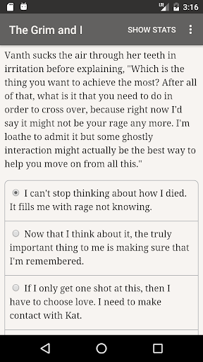 "The Grim and I" is a unique 155,000 word interactive novel by Thom Baylay, where your choices control the story. It's entirely text-based—without graphics or sound effects—and fueled by the vast, unstoppable power of your imagination.