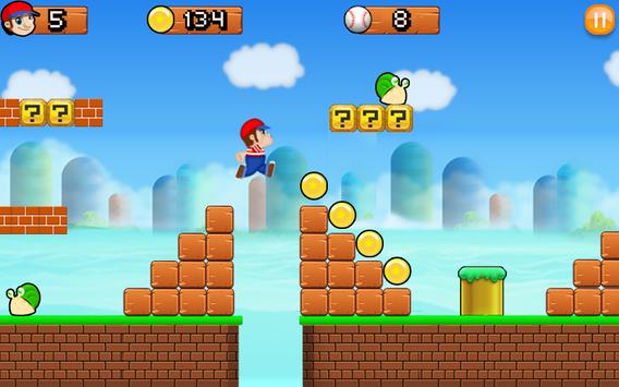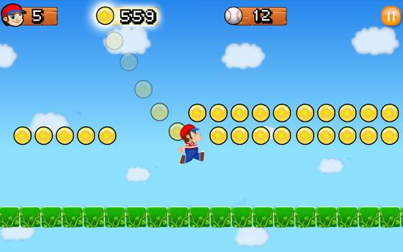 Start your exciting journey by jumping and running around the mountain land as you run pass tiles by tiles, dodging enemy fire ball attack, and pick up useful items along the road to throw baseball towards them!