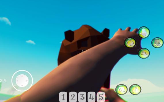 You can set camps or beds everywhere. If you are too cold, you should light a fire. You may get sleepy, hungry and thirsty. The most dangerous is a bear in the forest. If you can kill the bear, you can win the game. But be careful the bear is very strong. There are many animals like elephants, giraffes, snakes, cows, horses, spiders.