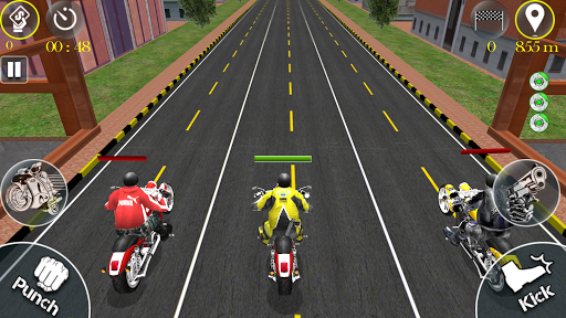 - Adrenaline-rush racing gameplay. Control your motorbike on a highly-trafficked highway while trying to stay alive. You're allowed to kick/punch your opponents to finish first and get bonus points for destroying cars and doing stunts.