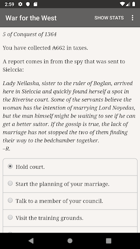 * Make allies and enemies as you visit neighboring provinces and interact with other nobles.
