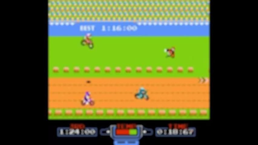The player chooses between running alone or against motorists driven by the console, also competes against a certain time limit. The goal is to qualify for the Excitebike championship by finishing in the top three in the race. The time to beat is shown on the walls of the stadium (to be in first place) and in the lower left corner of the screen (to be in third place). In any race the best time is 8 seconds above the third place. When the player manages to be first, the message is displayed: "It's a new record!" ("It's a new record").