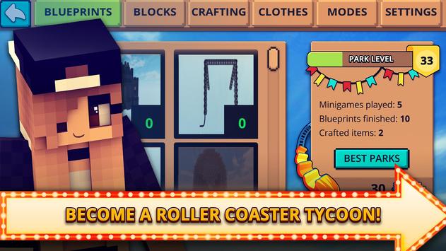 Theme Park Craft 2 - continuation of one of the best crafting & building games in the store! Create any theme: dungeon adventure, clown or recreate an Orlando theme park! Theme park rider for mobile! Use blocks and craft items to make your park look awesome!