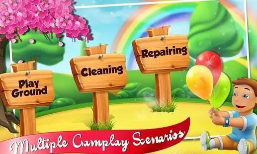 It's time to enjoy all amusement park fun with your other friends. But wait! Play ground is all messy and dirty.. guess it needs a makeover and cleaning. But playgrounds cannot go to salon spa which is why you will have to get it back in shape as soon as possible. Be the best builder, designer and repairer of playgrounds slidey and swings. Grab your reparation and fixing tools and start renovating amusement water park with your professional skills. It is easy to play with toys and leave them broken or messy. Little boys and girls show responsibility and helping others allow you to constantly learning interesting things. Check out this cleaning game to design, decorate and build the amusement park.