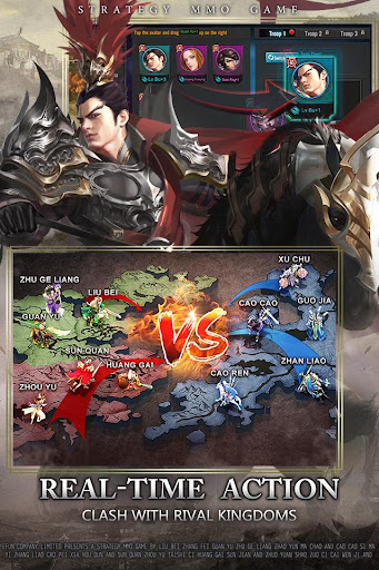 - You can command 3 troops at the same time. Control 15 heroes and thousands of soldiers at real time, and carry out various tactics like Siege, Road-breaking, Inrush with allied players, to launch a fierce attack against the opponents.