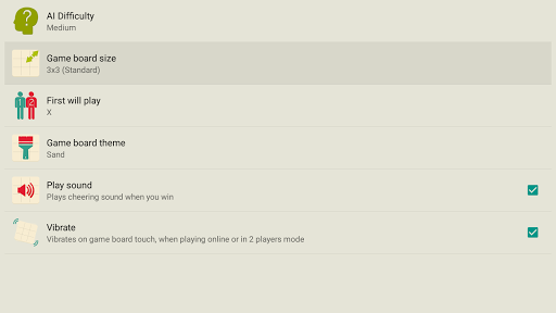 * Ability to switch between different board sizes (3x3, 6x6, 8x8, 10x10)
