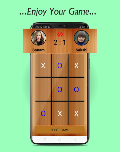 With "Tic Tac Toe" game App, Two players seek in alternate turns to complete a row, a column, or a diagonal with either three O's or three X's drawn in the spaces of a grid of nine squares; noughts and crosses.