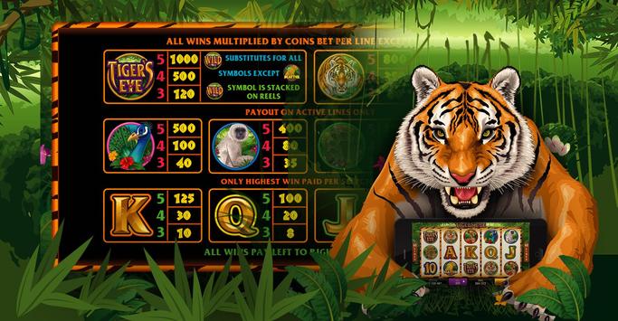 With Tiger’s Eye on your mobile device, you can grab your hat and machete, escape the concrete jungle and venture into a tropical jungle and encounter exotic animals and treasures whenever the mood strikes! This is a mobile slot gaming adventure just one quick download away from being set free on your device!