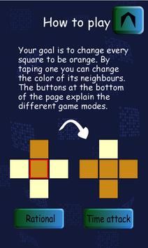 Your goal is to change every square to be orange. By tapping one you can change the color of its neighbours.