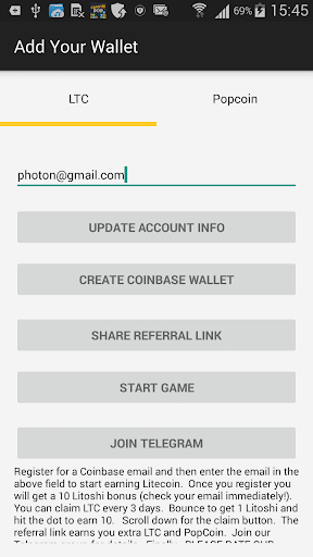 2. Play the game and earn at least 100 litoshis (nano Litecoin).