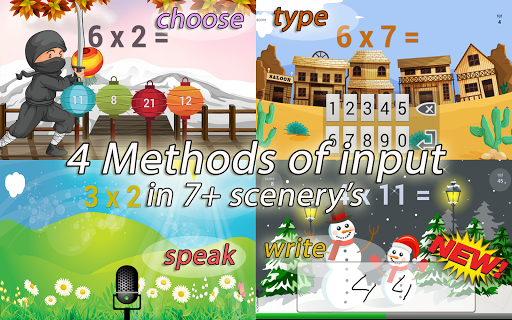 Unique Speech input: Besides choosing the correct answer out of 4, or enter the correct answer with a number pad, it is possible to speak the answer! The Google api speech recognition which is used has improved greatly. Kids voices are recognised now. Try it out.