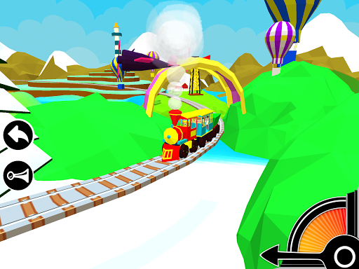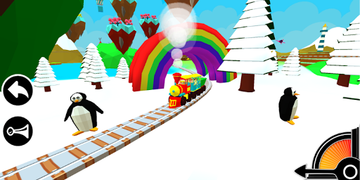 As you drive this train, your kids will be amazed to see colorful hot air balloons and deep tunnels in our fantasy land, where there are cute animals and snowman dancing everywhere in the snow. Cute Penguins, dazzling Rainbows, tiny helicopters, and dolphins will fascinate the mind. The tall & huge rocky mountains and colorful ice cream cones floating in mid-air will bring a smile on your kid's face. Join us for this magical train ride with 3D train driving game for kids.
