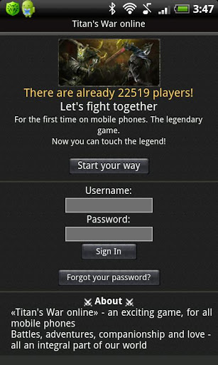 Titan's War-The best game for mobile phones. Fight epic battles, slay evil monsters, advance your character to the highest level! Equip your character, then battle enemies, demons and other children of evil! Improve you equipment, mine arms in the forge, complete quests, make your character as advanced as possible!Legends come true. Heroic age is back. Dark forces and wizards create chaos. It's up to you whether you are able handle the weapon, found a league, rule the lands, win the bloody battle and become the ace of aces. Or you are the lost soul who yields to the times. Gain goodwill of Gods. Join the knight's guild. Cross your blades with rivals. Become one of the elements of world of fantasy. Lord knows who can build up an empire and save the Universe. The final battle is near at hand. Show yourself at last. Fortune favors the brave!Equip your character, then battle enemies, demons and other children of evil!Improve you equipment, mine arms in the forge, complete quests, make your character as advanced as possible!Lead your character to glory!Application for players lets you to:- play on both mobile phones and computers- win battles and smash your opponents- choose a character and name him- learn fighting magic and attack your enemies with all power of your spell- find devoted and fearless brothers in arms by joining clans- artifacts help you win a victory over even the most lethal barbarians and vermin's- invite your friends to play via e-mail, sms, or social networkss such as facebook twitter and MailKeywards: clash of titans, titans, barbarian, warrior, online game, strategy, action, tiwar, MMORPG, mobile, mmorpg, online, rpg, heroes, magic, swords, armour.Clash of the titans (RPG) based on elements of playing process of traditional board role games.Typical for our game RPG is to have quite a large array of features for the main character which define his power, ability and fighting capacity. You can improve your settings by killing your enemies and completing missions.