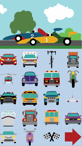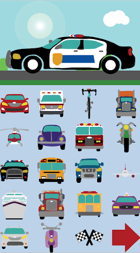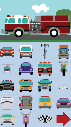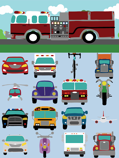 Tap each vehicle's picture to help your kids learn the names of different vehicles.