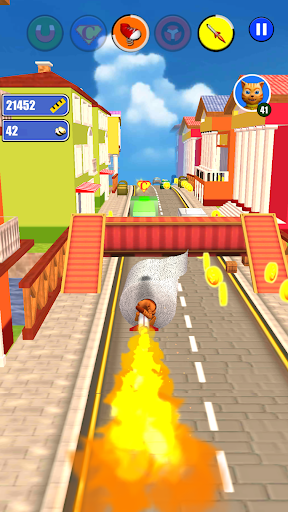While running, avoid hitting trucks, cars, buses or any other object that could either slow you down or stop you. Collect all the gold coins and the fun power ups to get further and to give the tireless dog the slip. Start your way, run as fast as you can to escape from Tom the angry dog.