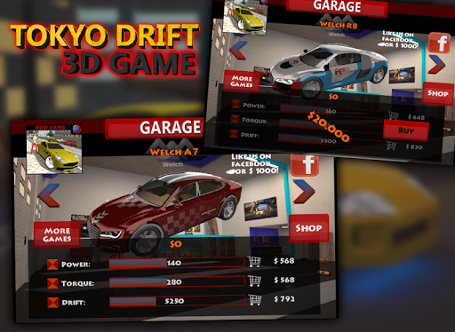 Tokyo Drift 3D Street Racer features over 10 different vehicles.