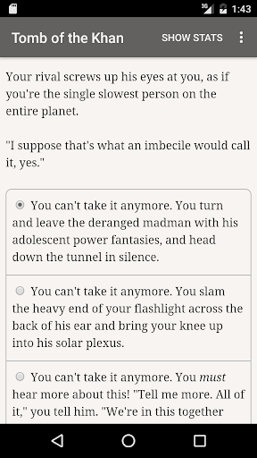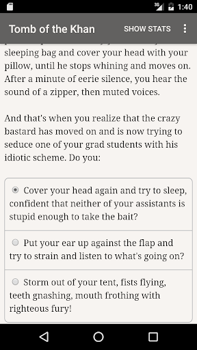 "Tomb of the Khan" is a thrilling interactive horror novel by Todd Maternowski, where your choices control the story. The game is entirely text-based--without graphics or sound effects--and powered by the vast, unstoppable power of your imagination.