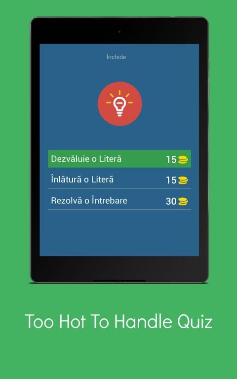 Principiul jocului este simplu - te uiti la fotografie cu persoana respectiva si trebuie ghicesti numele cu ajutorul literelor plasate pe ecran!