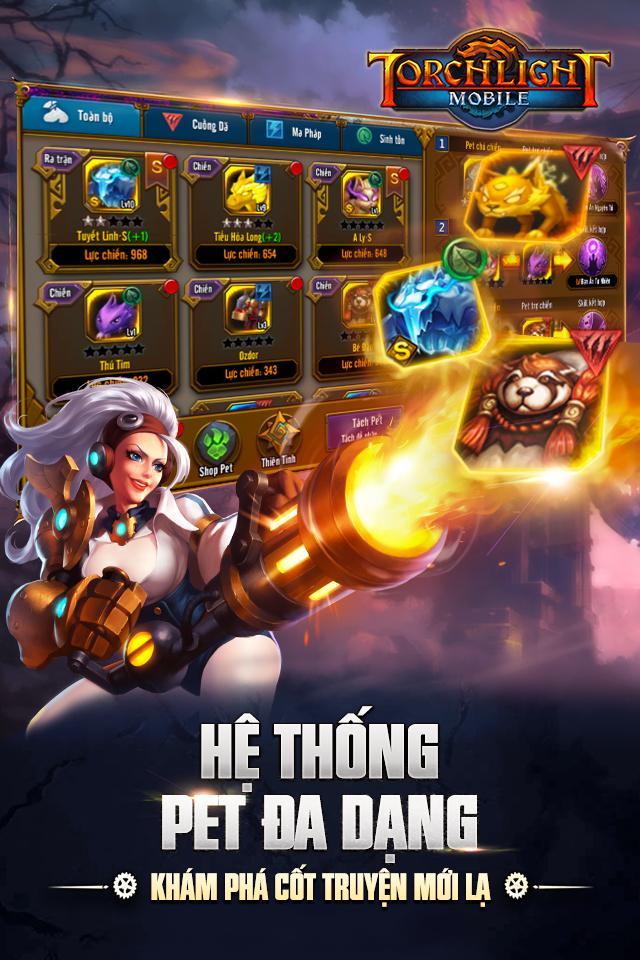 Cũng giống như phiên bản PC, Torchlight Mobile chú trọng vào việc khám phá và chinh phục các dungeon khác nhau. Mỗi màn chơi đều thực sự khó khăn và thử thách khi luôn xuất hiện những con Boss khó nhằn. Để hạ gục được chúng, người chơi cần phải lập nhóm với các lớp nhân vật khác nhau và đưa ra những phương án chiến đấu. Không chỉ có một mình, hệ thống thú cưng trong game cũng vô cùng phong phú cho người chơi nhiều cách lựa chọn bạn đồng hành ưng ý nhất.