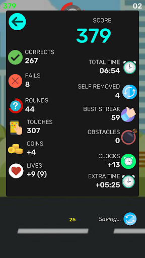 Mode 1vs1: Play against a friend, the first to lose stops the game; The player with the most points Wins!