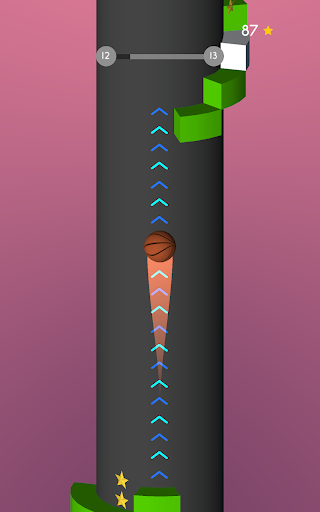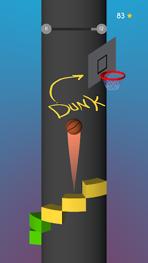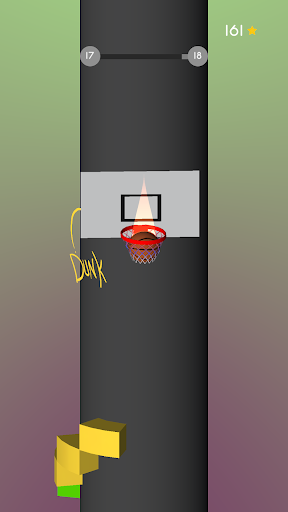 Press and hold to rotate the tower. Bounce on the green and white tiles to go up. Avoid red tiles! Jump on yellow tiles to make a dunk!