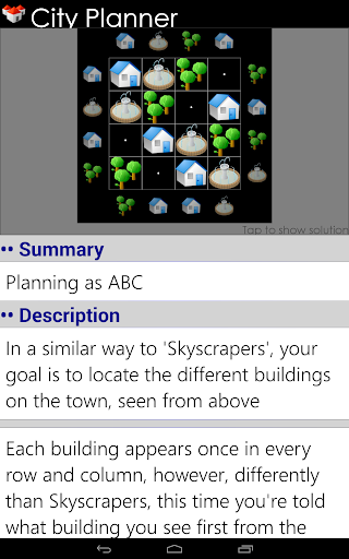 Train your brain with more puzzle games from "100 Logic Games" : More Tents and Skyscrapers, variants and bonus City Planner