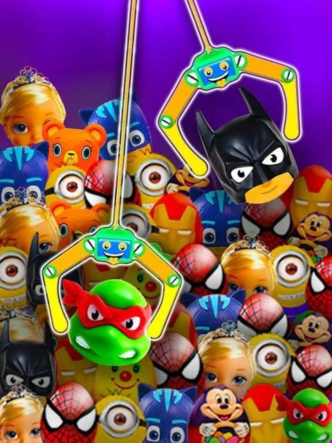 Unlock each level to grab new superhero and cartoon surprise toy eggs from claw machine