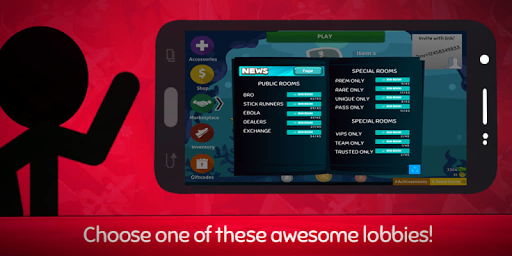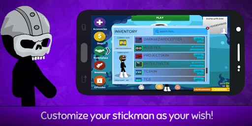 Customize your own Stickman with more than 300 in-game items! Trade those items with players around the world. Collect more awesome items from various rarity normal, premium, rare, ultra, unique, exclusive, ex unique and don't forget to compete with other users in the global leaderboard and win never before seen limited in-game items.