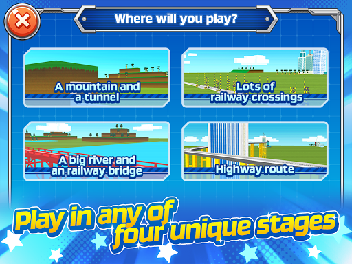 *You can choose from eight different stages that your train will travel through: "a mountain and a tunnel", "lots of railway crossings", "a big river and a railway bridge", "highway route","Japanese scenery","Jet coaster","Inbound and outbound" and "Pass through many".