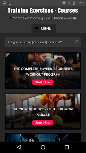 This app "Training Exercises - Courses" will be your ultimate source for full workout plans and advice on building muscle, improving nutrition, and using supplements. You can now with "Training Exercises - Courses" get in the best shape of your life with a lot of free workout courses and custom training programs that help you crush your fitness and bodybuilding goals. Training Exercise Courses is the TOP fitness app for you. download it now to own your workout plan with all the guidance and motivation you need!