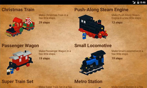 Follow the step-by-step instructions to build train figures. Playing is fun and will add a lot the development of motoric skills. This puzzle game is really for all ages. Bring the bricks together and follow the color pattern.