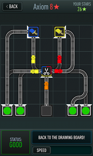 The first few puzzles are almost too easy, but as the difficulty increases you'll be thankful that you were able to practice the fundamentals of drawing track. As the game progresses, you'll have to use basic colour theory to combine trains of different colours, use timing to merge, and use every inch of your brain in your quest to beat the game.