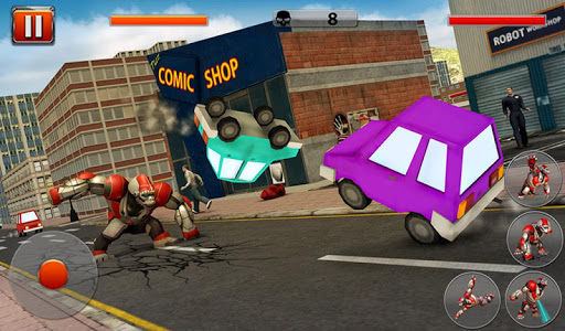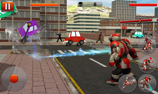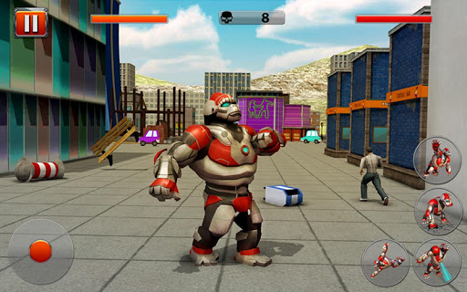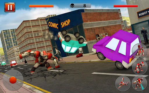 An experiment has gone wrong and turned a peaceful gorilla into a monster! Now RoboKong roamed into the city with rage and is attacking with no fear! RoboKong is fierce. Use your sharp animal instincts combined with futuristic android powers to take down the town! You are more than ten times the size of humans with super strength and agility! Use super powers like the Spar attack, Big Bang attack, Rooting attack, and more. CRUSH the roads and sidewalks, SMASH vehicles and cars. Throw mailboxes and bicycles! This game is the ultimate destruction experience. Release your inner BEAST and take revenge on foolish human scientists who turned you into this monster!